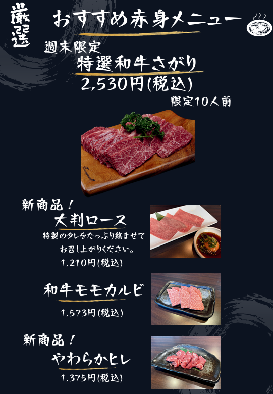 特選4種盛り合わせと単品で4種類追加されておりますので、ぜひこの機会にお店に足を運んでいただきご賞味ください!
